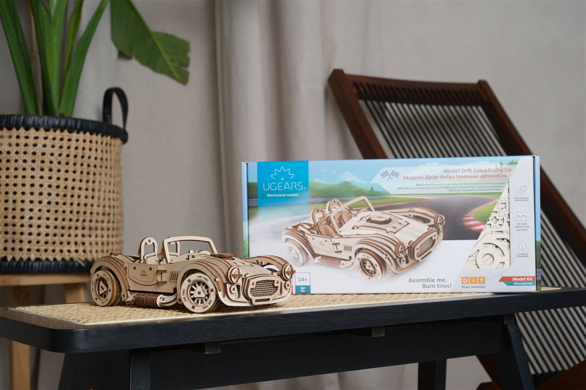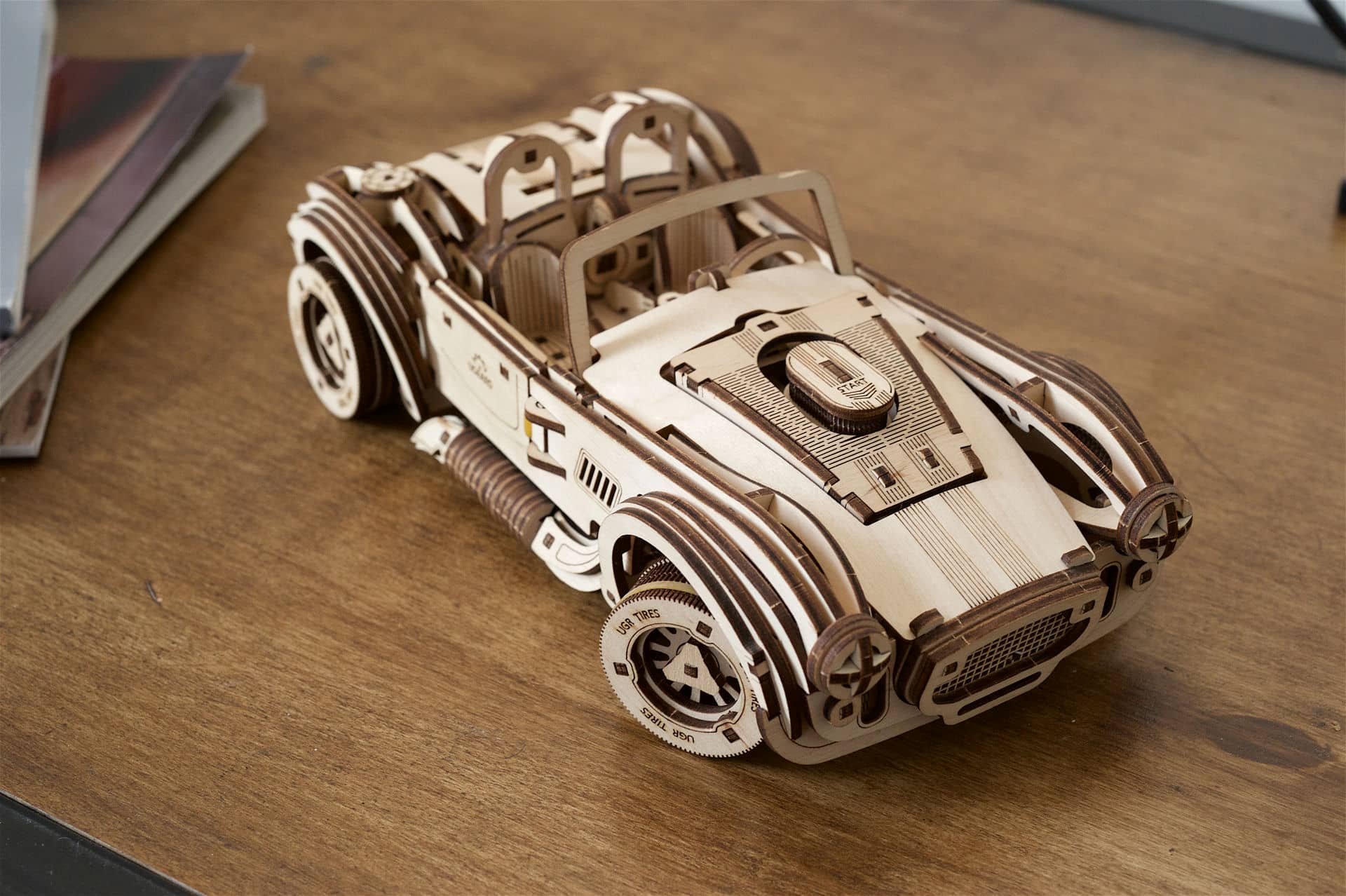 9 godzin. Poziom zaawansowania: trudny. Pójdź w ślady Carolla Shelby’ego i własnoręcznego zbuduj piękny i funkcjonalny samochód! Wszystko, czego potrzebujesz do tego trudnego, ale możliwego do wykonania projektu drewnianej układanki DIY znajduje się w pudełku. Są to wysokiej jakości płyty ze sklejki z precyzyjnie wyciętymi laserowo elementami. Można je wycisnąć, a następnie złożyć bez użycia kleju lub specjalnych narzędzi. Oprócz tego jest też metalowa sprężyna, która napędza mechanizm i oczywiście zestaw szczegółowych, ilustrowanych instrukcji w 11 językach.