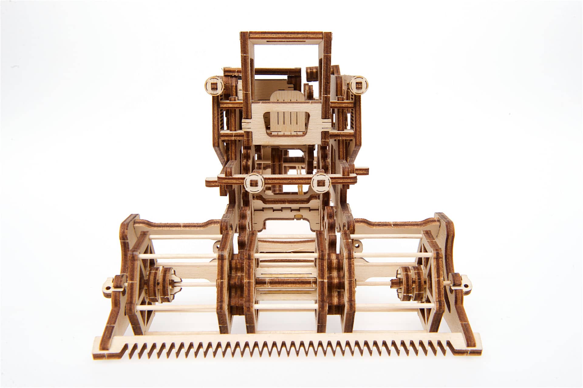 Kombajn żniwny UGEARS jest modelem, który w każdym szczególe oddaje swoją wyjątkowość jako mechaniczne cudo modelarstwa. W czasie jazdy do przodu, bęben żniwny zaczyna kręcić się jak w prawdziwym kombajnie.