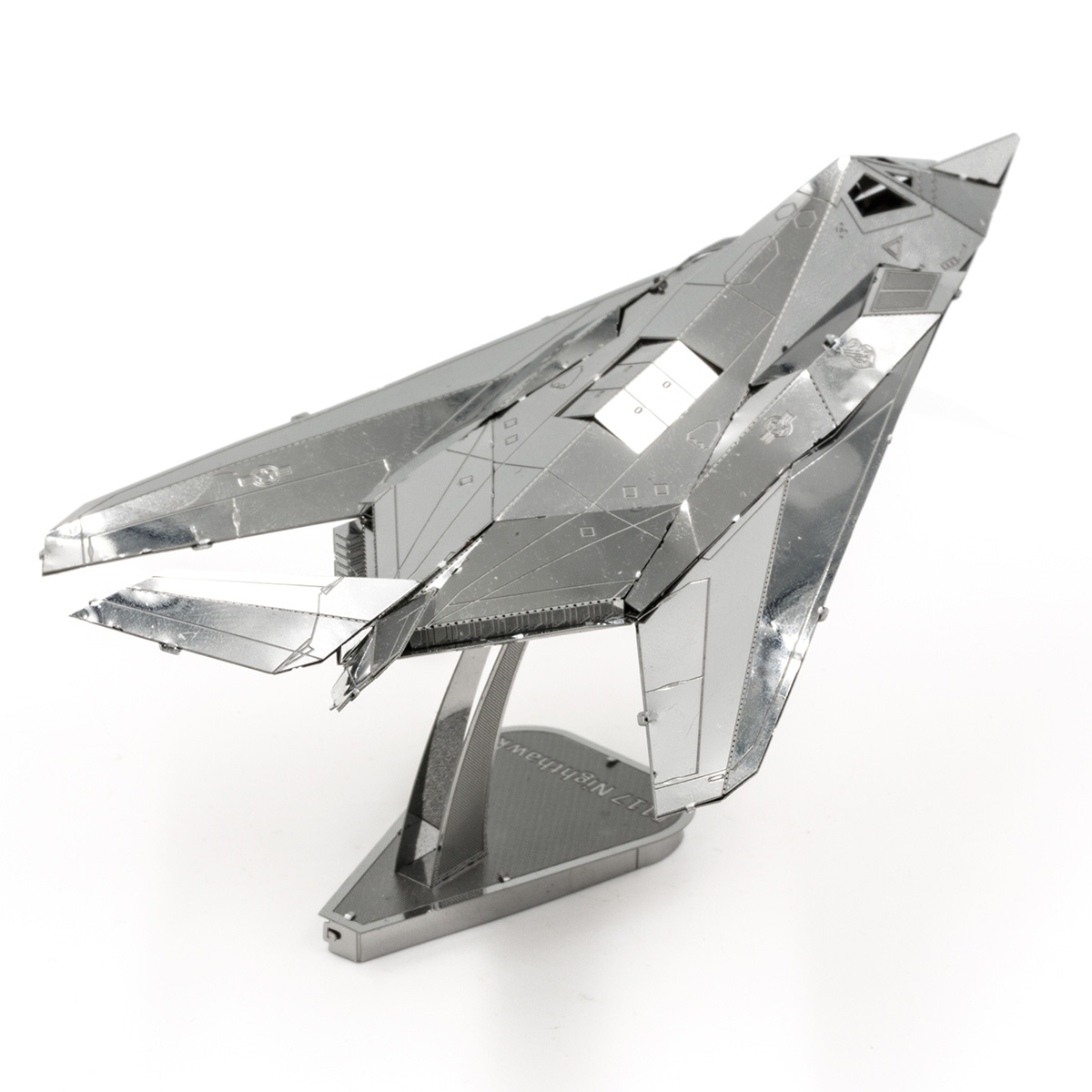 Wzór modelu wycinany laserowo w metalowym arkuszu.