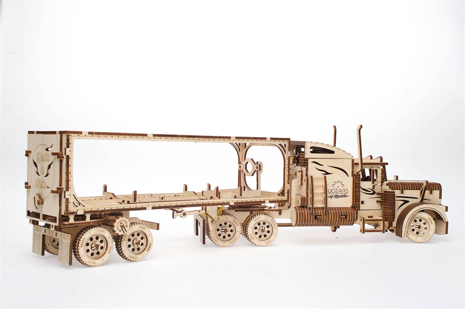 Naczepa do modelu “Ciągnik VM-03” od UGEARS jest interesującym samodzielnym modelem. Jednak czyżby nie było o wiele ciekawsze używanie ciągnika razem z częścią naczepową? Tak właśnie zdecydowali inżynierowie UGEARS i stworzyli model naczepy, który uzupełnia Ciągnik VM-03, aby Twoje doświadczenie kierowania dużymi ciężarówkami było jeszcze bardziej ekscytujące. A zarazem prawdziwe.