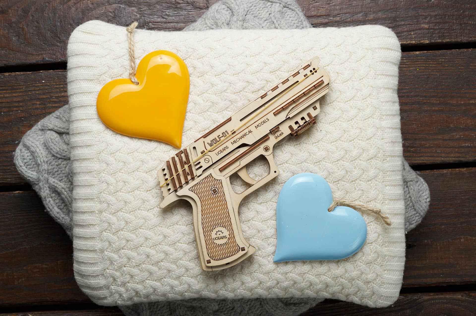 Nowy model UGEARS to nie tylko drewniana zabawka, której funkcje sprowadzają się do celowania i wyobrażonego strzelania za pomocą wykrzyku: “Pif-paf!”. Wolf-01 to mechaniczny, pięcionabojowy pistolet o doskonałych charakterystykach techniczno-taktycznych, z których najważniejszą jest ogromny ładunek bezpiecznej i pokojowej zabawy.