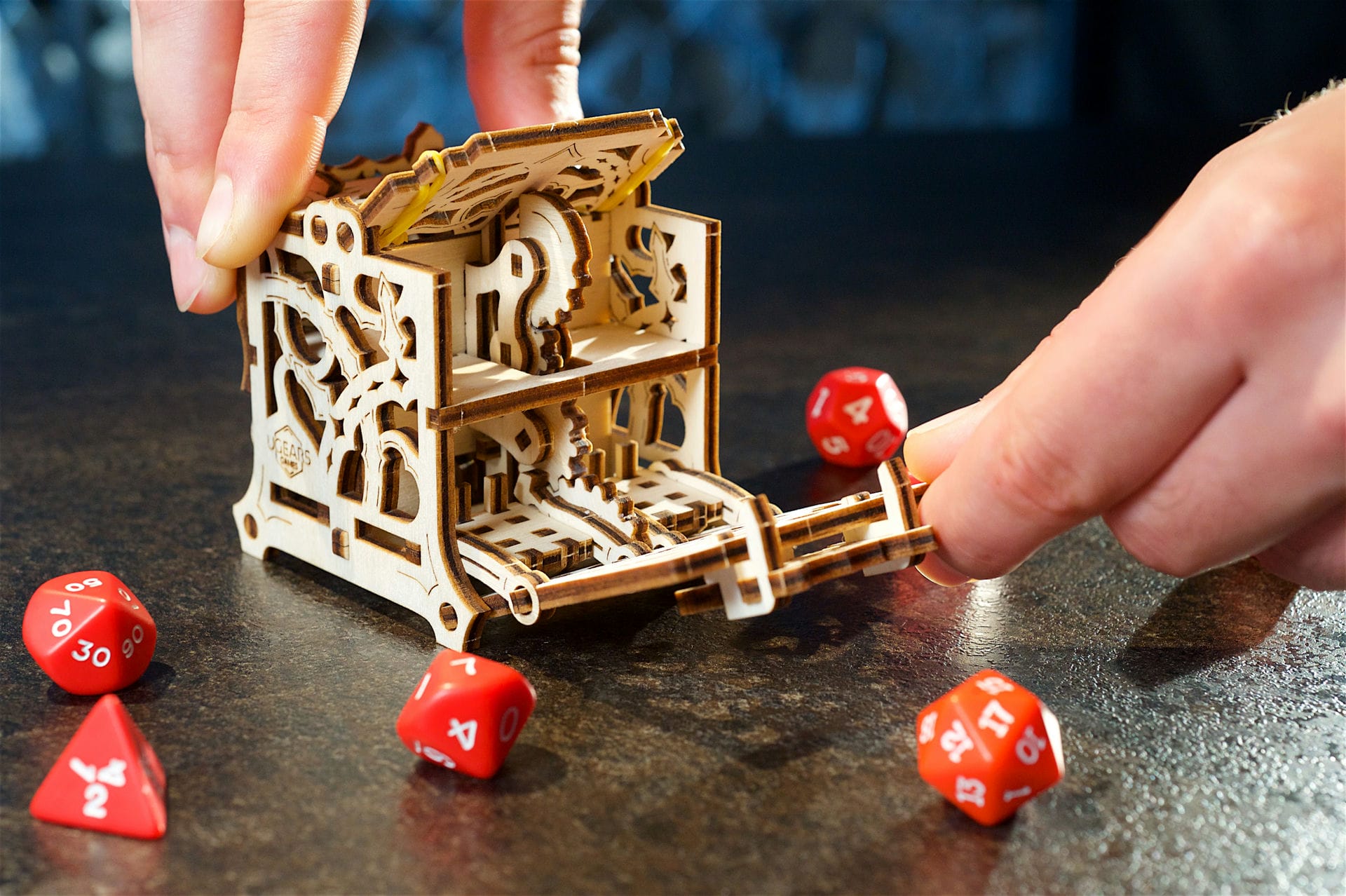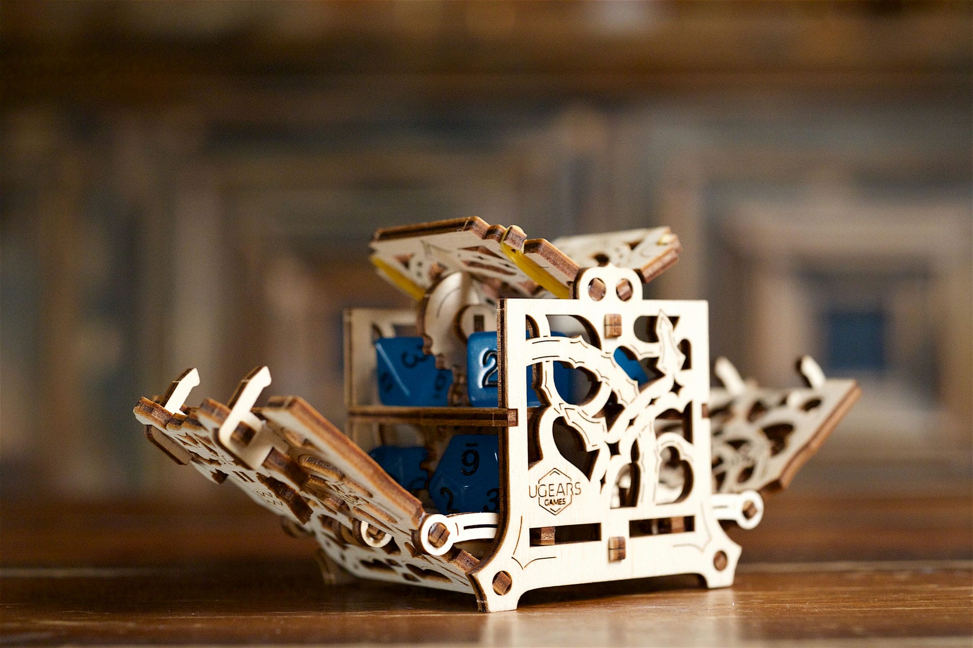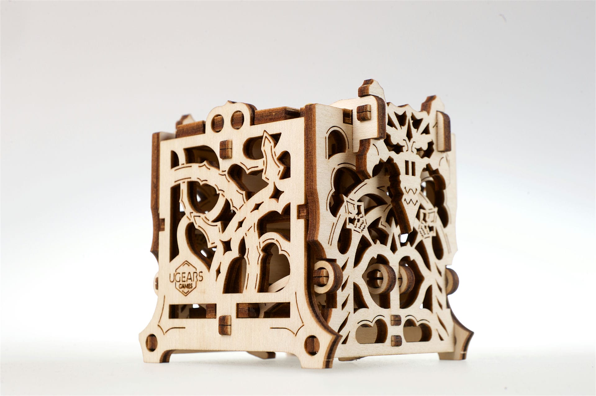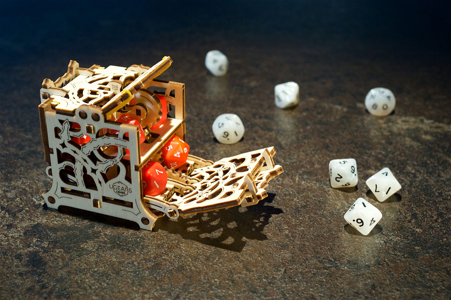 Rozwijając temat gier planszowych w nowej serii Ugears Games, Ugears przedstawia Pudełko na kości. Jeśli zbierasz kości, grasz w gry planszowe i lubisz unikalne mechanizmy, to Pudełko na kości jest dokładnie tym, czego potrzebujesz. Model ten stanie się ulubionym atrybutem w bitwach przy stole i doskonałym uzupełnieniem kolekcji drewnianych puzzli 3D od Ugears.