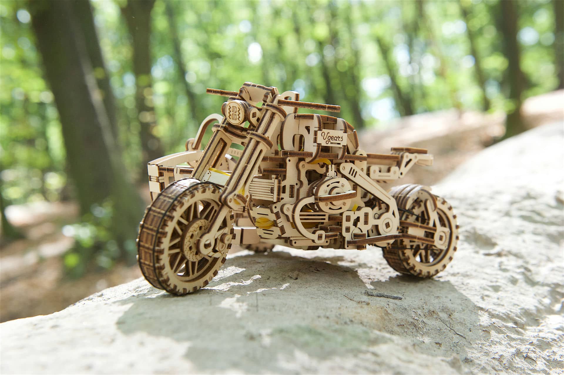 Motocykl jest napędzany silnikiem gumowym połączonym z kołami za pomocą sprzęgła. Klucz do nakręcania znajduje się pod maską zbiornika paliwa. Jedno nakręcenie napędzi Twój Scrambler do pokonania 3 metrów. Kieruj motocyklem tak, jak chcesz! Jedź w kierunku nowej przygody!