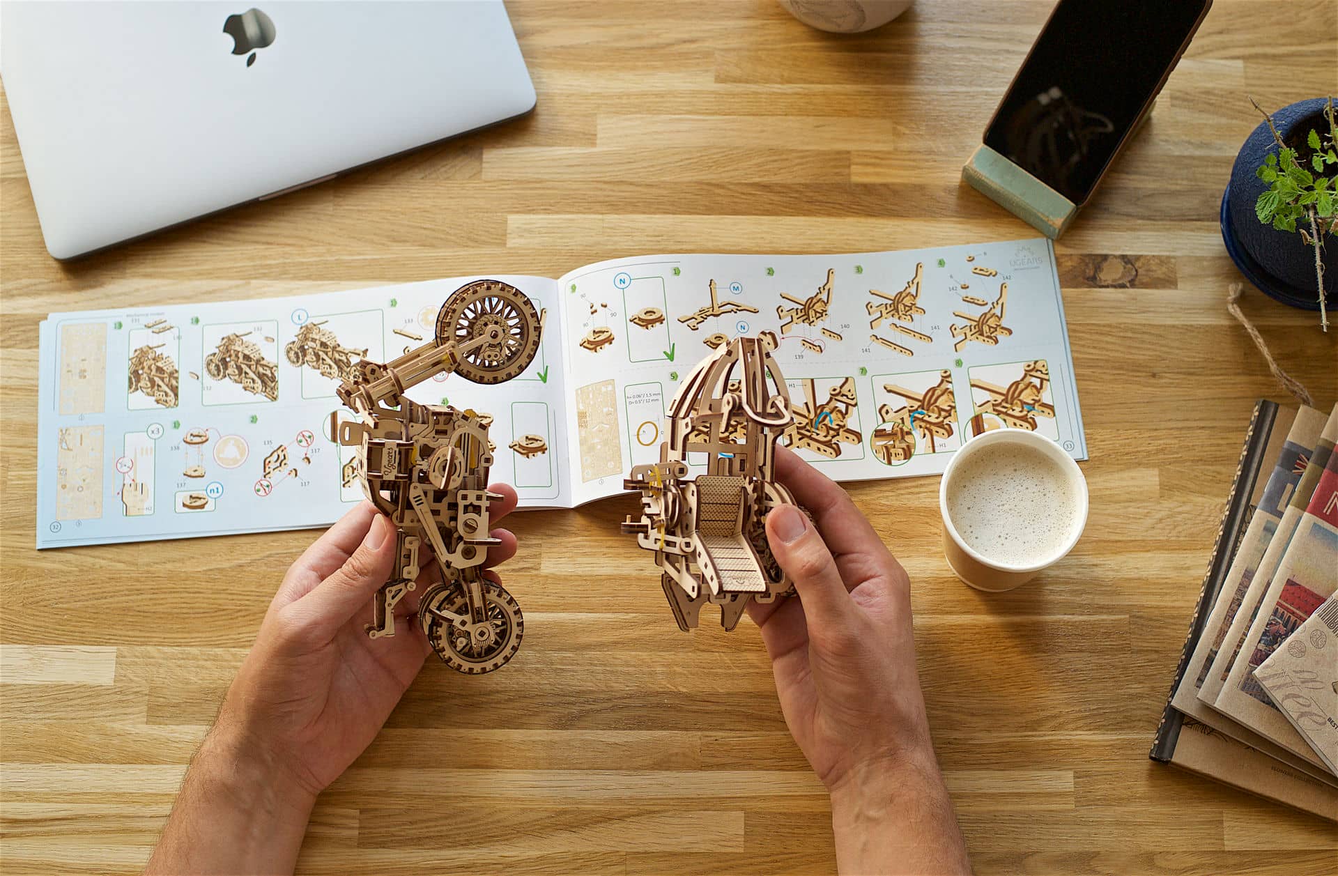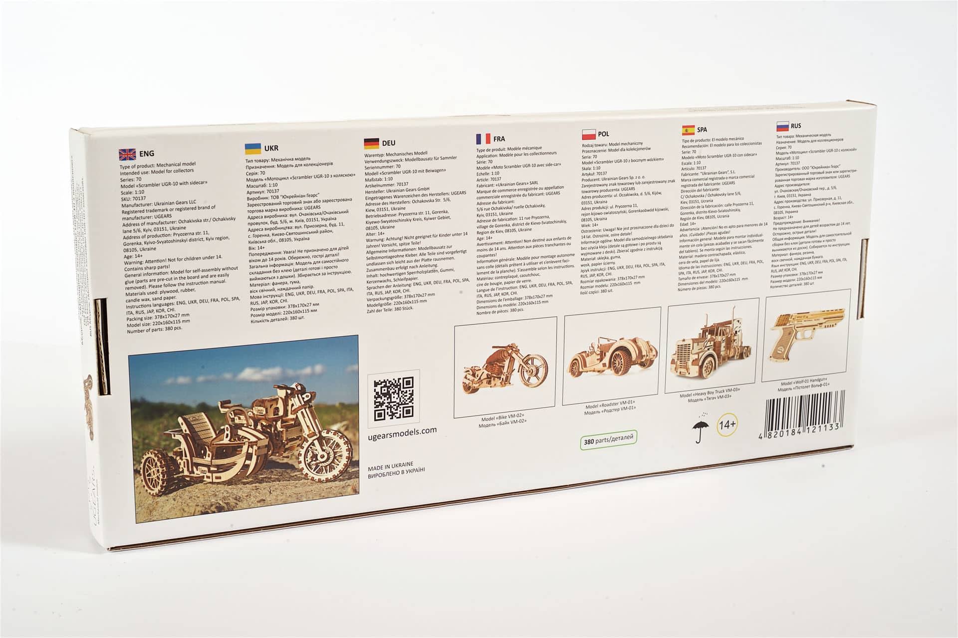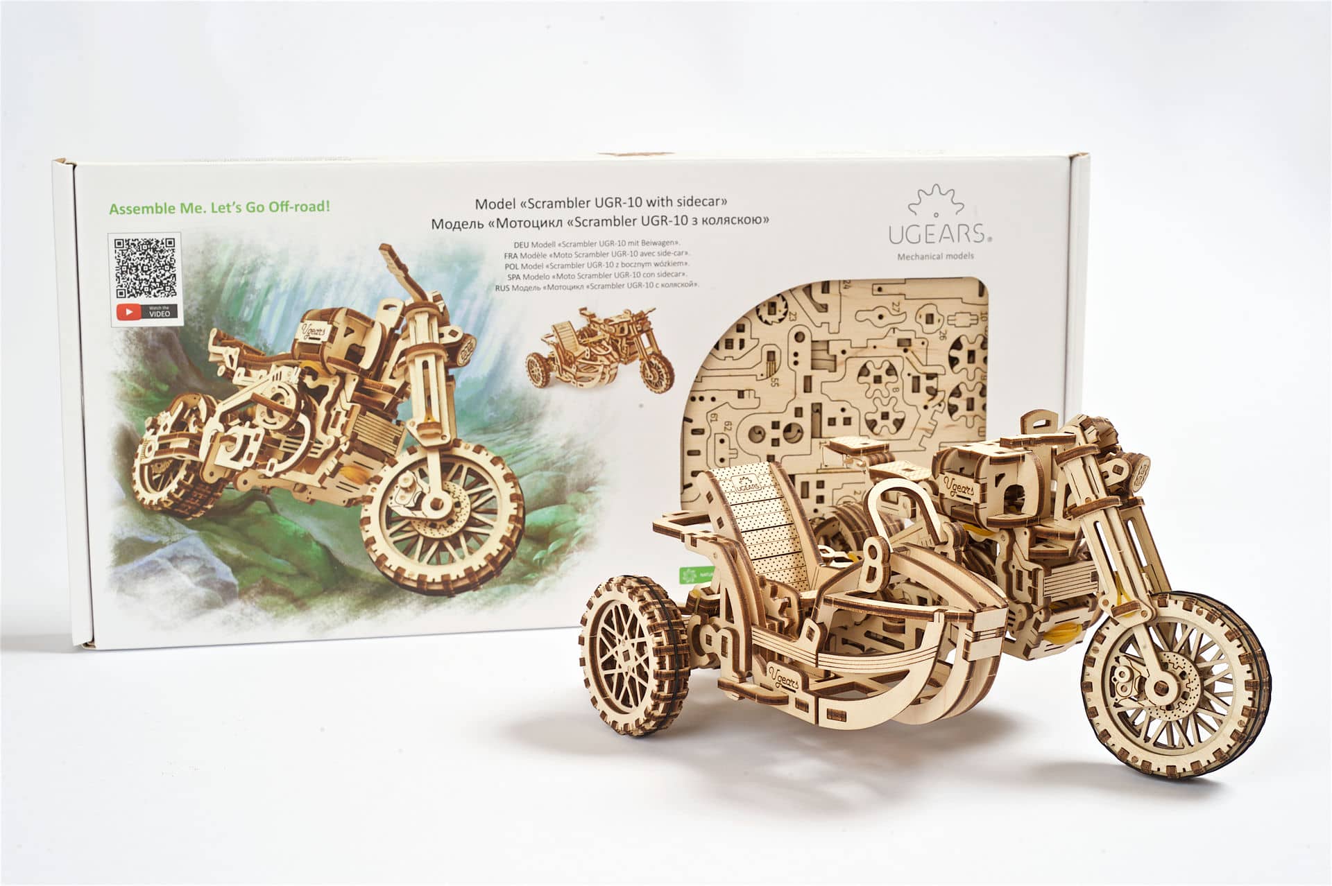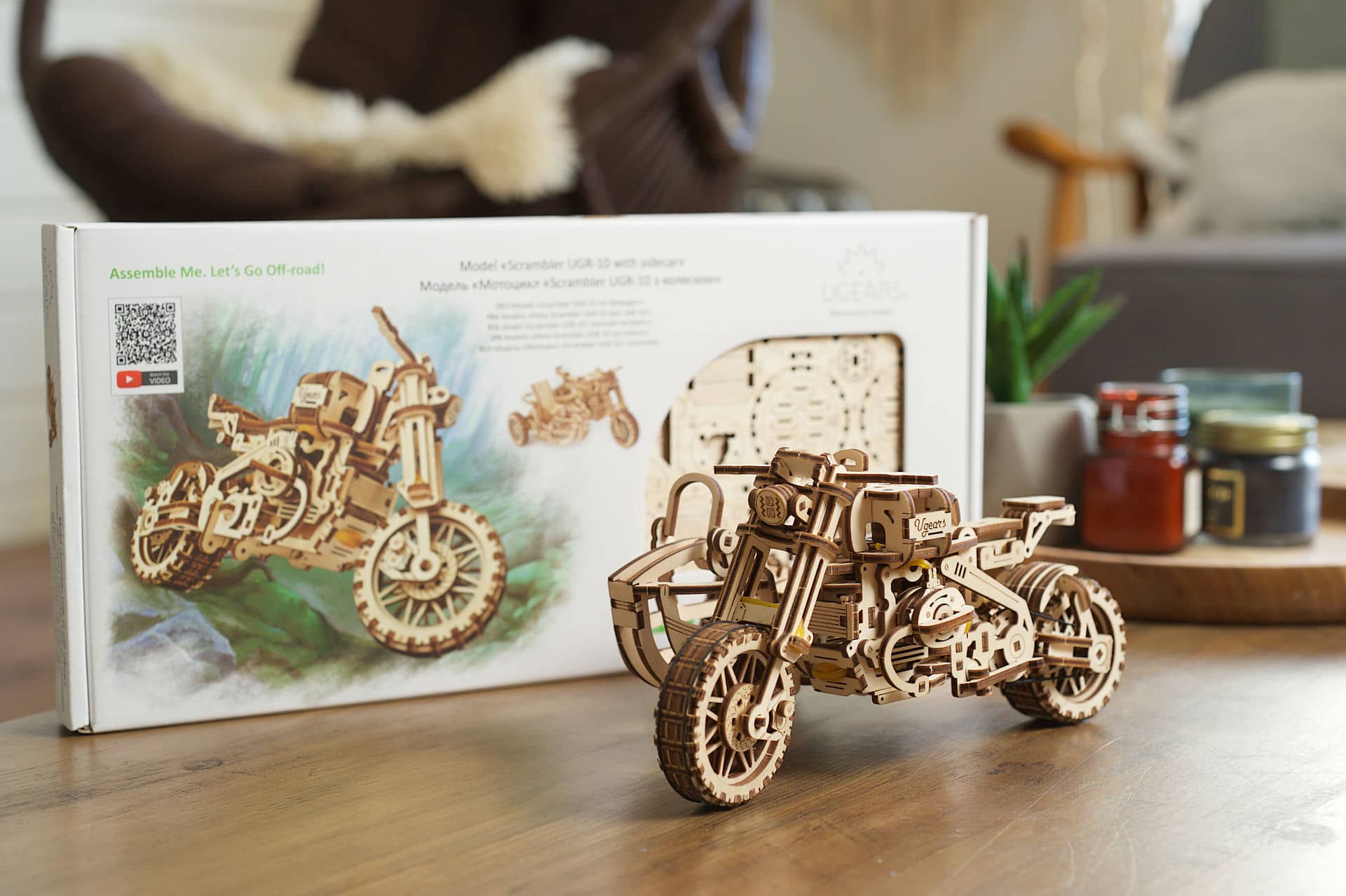 Scrambler bazuje na prototypie motocykla dual-sport, pojazdu zaprojektowanego do poruszania się zarówno po śliskich asfaltowych autostradach, jak i po drogach o dużym natężeniu ruchu lub w trybie Dirty Tracker. Oryginalne motocykle dual-sport pochodzą z rodziny tak zwanych “scramblerów” – lekkich motocykli miejskich produkowanych przez Triumph i BSA już w latach 50. XX wieku. Dzięki inteligentnej konstrukcji zawieszenia i wysoko zamontowanym tłumikom, motocykle te były bardzo dobrze przystosowane do jazdy po nierównych drogach. Podobnie jak prawdziwy motocykl, model ten jest nie tylko szybki, ale i bardzo stabilny dzięki zastosowaniu widelca i zawieszenia wahadłowego na przednich i tylnych kołach. Realistyczny design retro uzupełniony jest sprytnym naśladownictwem w pełni działającego silnika z przeciwbieżnymi cylindrami.